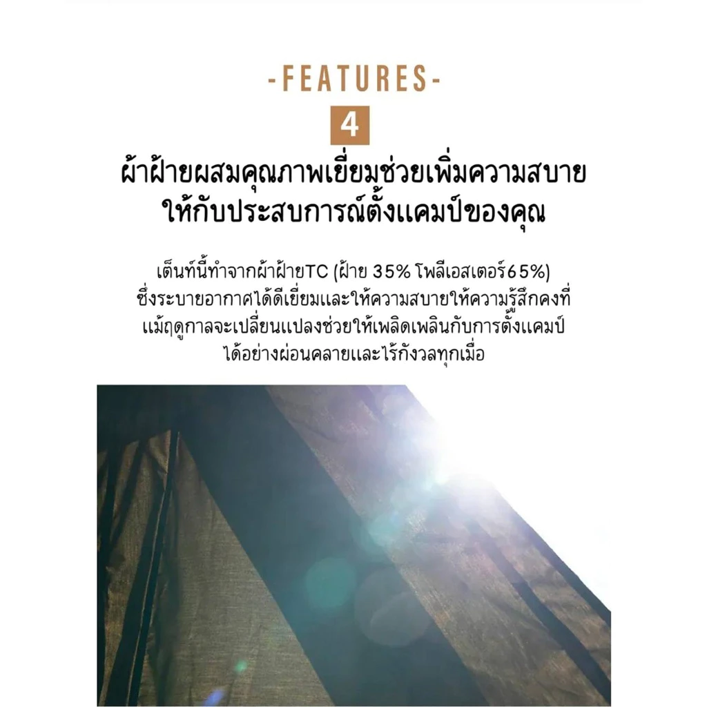 ●เต็นท์หลักเพียงหลังเดียวมีเต็นท์ผ้าฝ้าย TC ขนาด 19 กิโลกรัมเท่านั้น